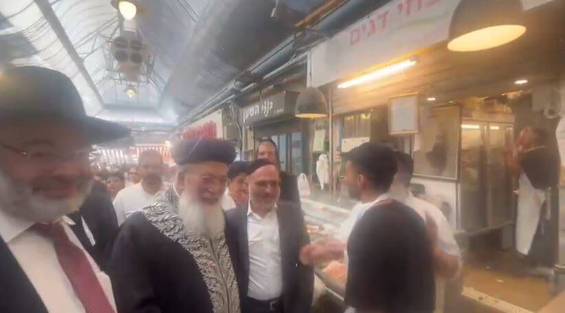 הראש"ל הגרש"מ עמאר ערך ביקור מפתיע בערב שבת קדש בשוק מחנה יהודה
