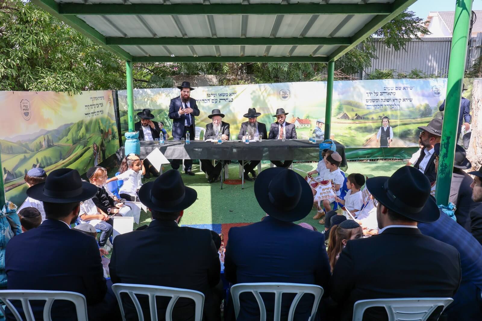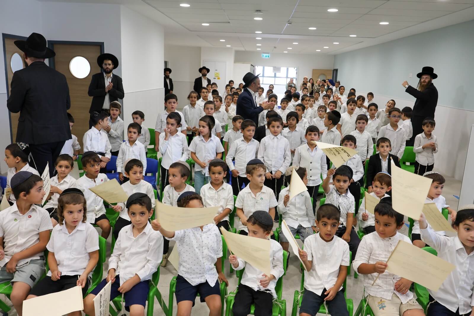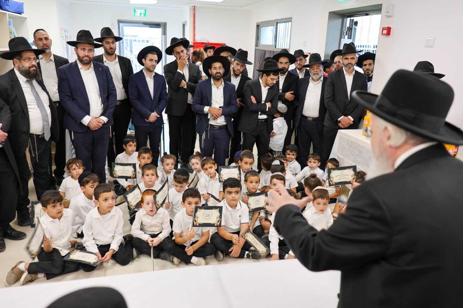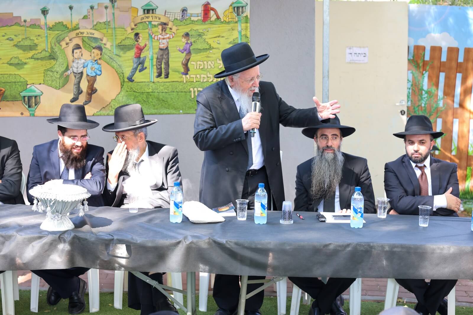 מרן הגאב"ד שליט"א נשא דברים מול הילדים וההורים, והזכיר את דברי המשנה באבות "אם אתה נותן לי כל כסף וזהב ואבנים טובות ומרגליות שבעולם, איני דר אלא במקום תורה" והרחיב על החשיבות של ההשתייכות לעולמה של תורה, באופן הנעלה והמהודר ביותר.