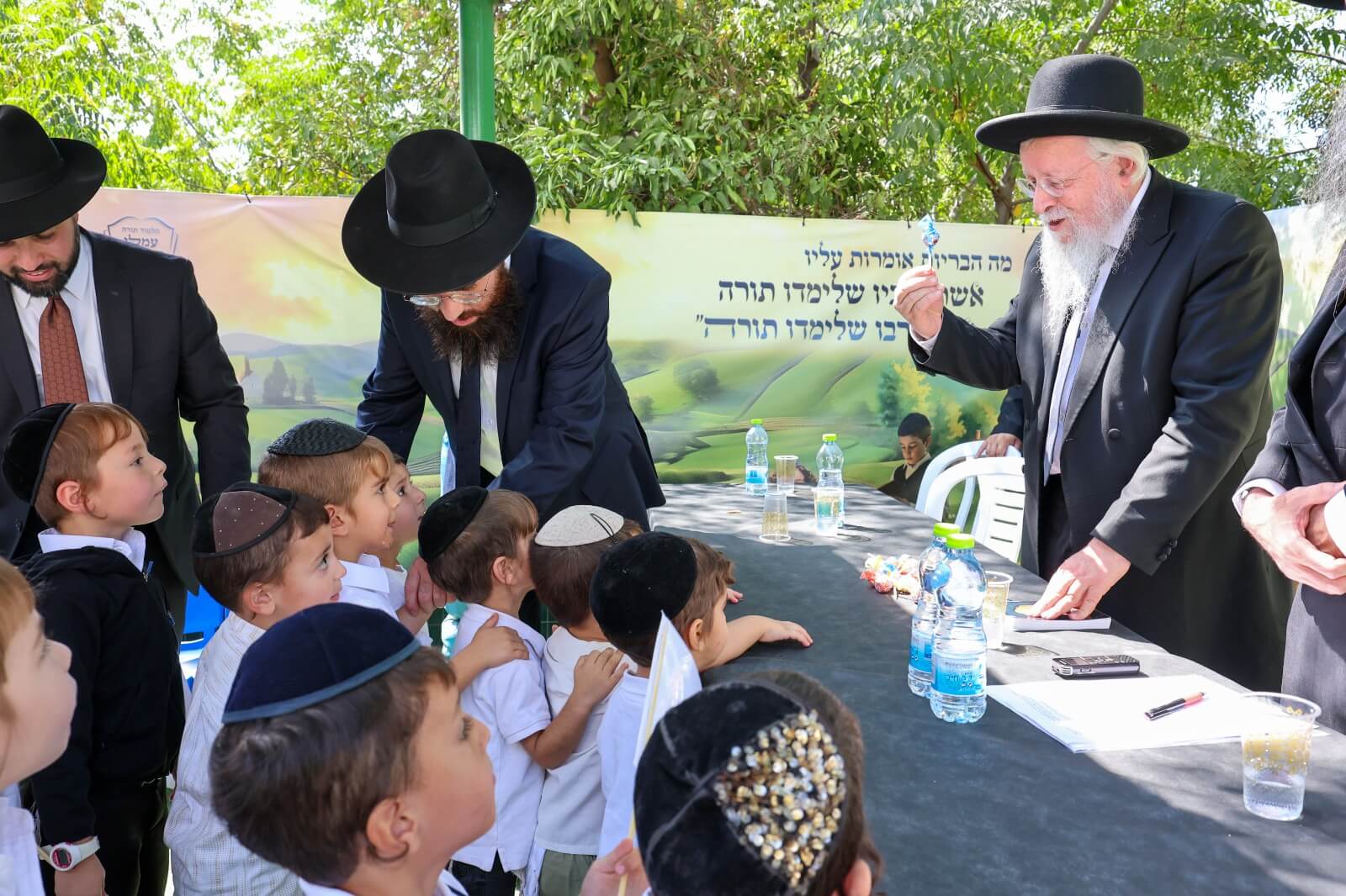 בסיום המעמד זכה כל ילד לברכה אישית מפי מרן שליט"א, אשר העניק לילדים ממתק כסמל לשנה מתוקה וטובה. צפו: