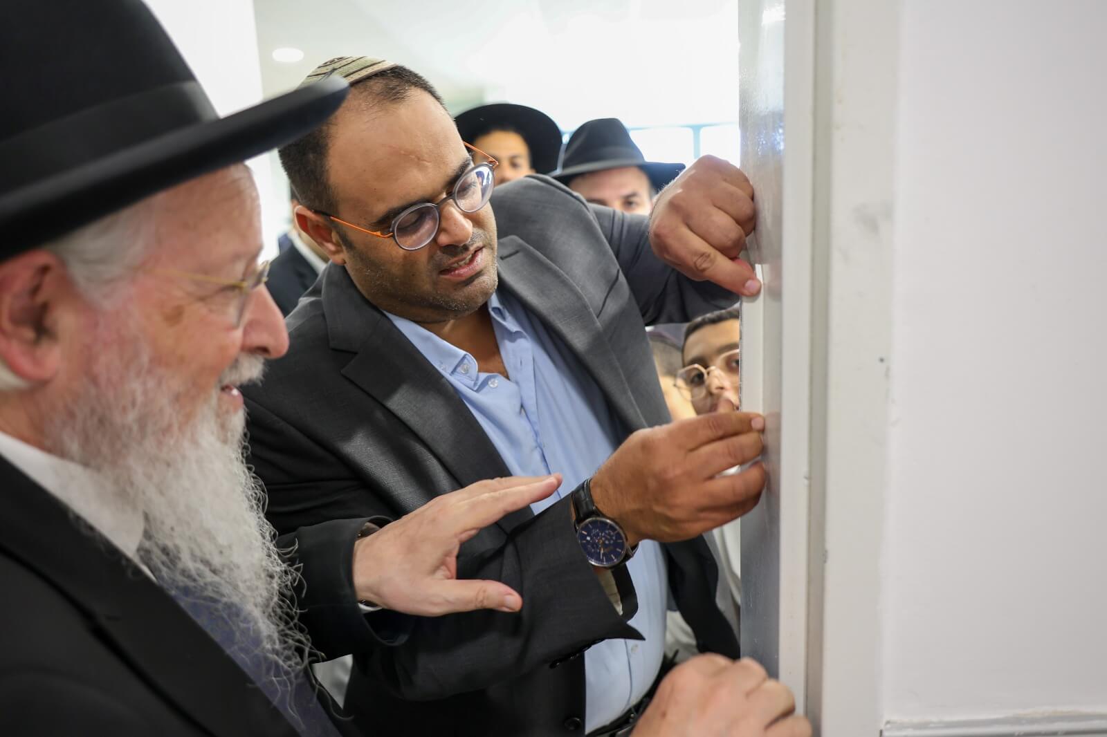 מעמד חנוכת הבית וקביעת מזוזות לת"ת עמלי התורה בעיר חדרה​