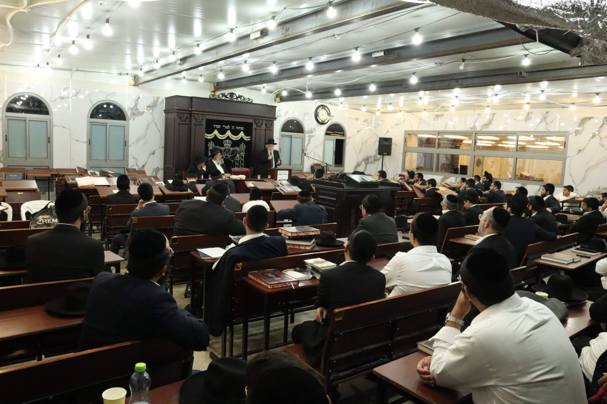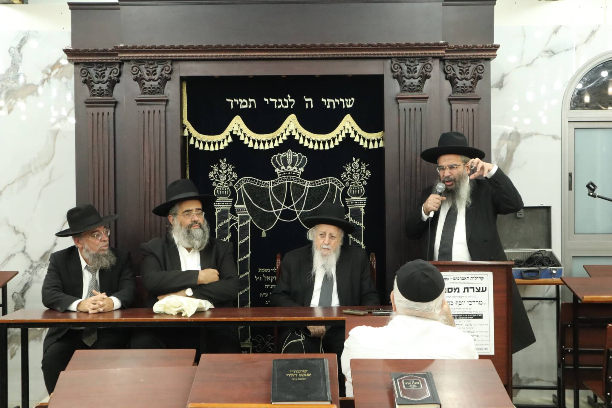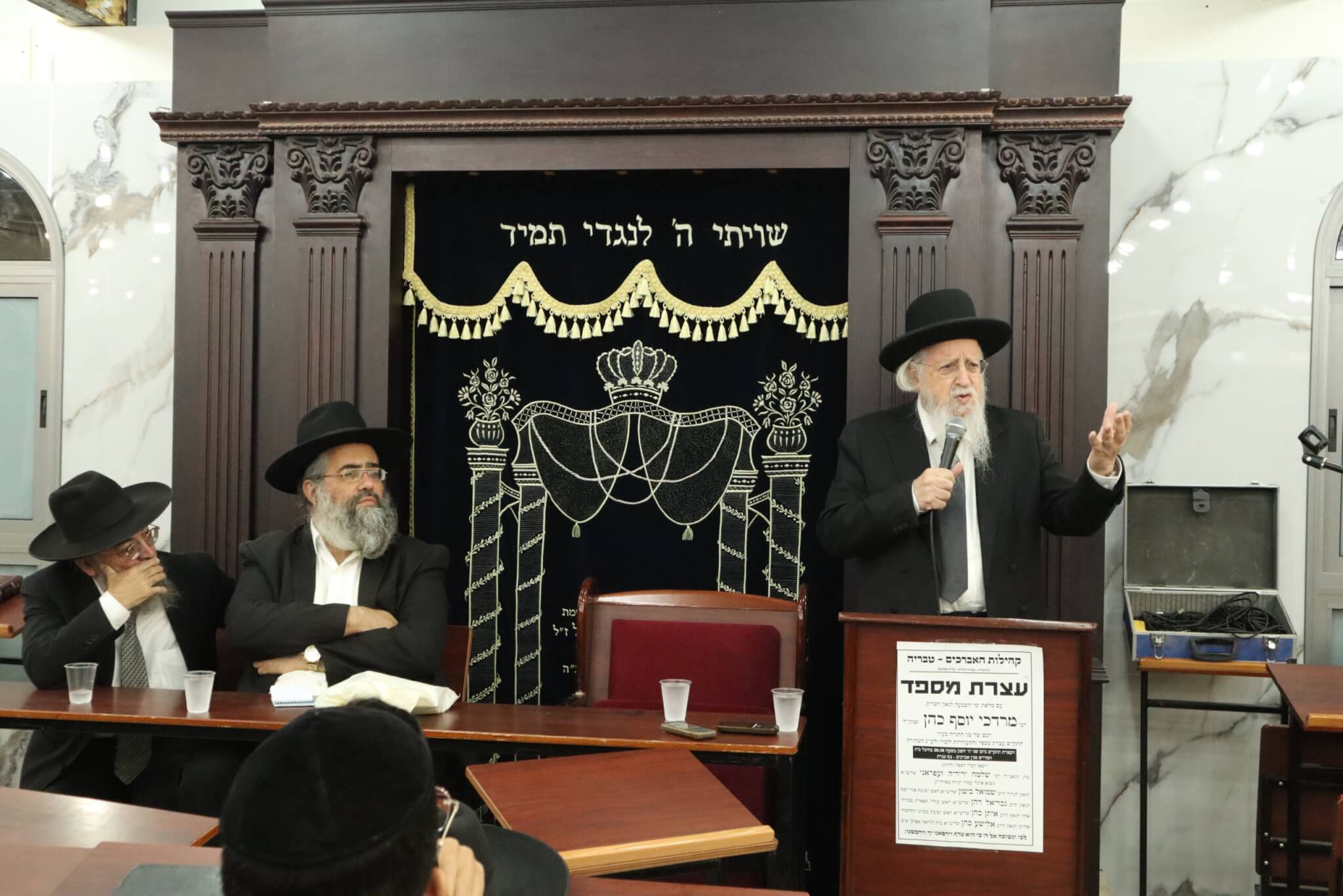 תחילה הגיע אל היכל בית המדרש הגה"צ חכם ניסים בן שמעון שחיזק את האברכים בחשיבות חיזוק התורה אל מול הילדים ובכך יהוו דוגמא אישית.