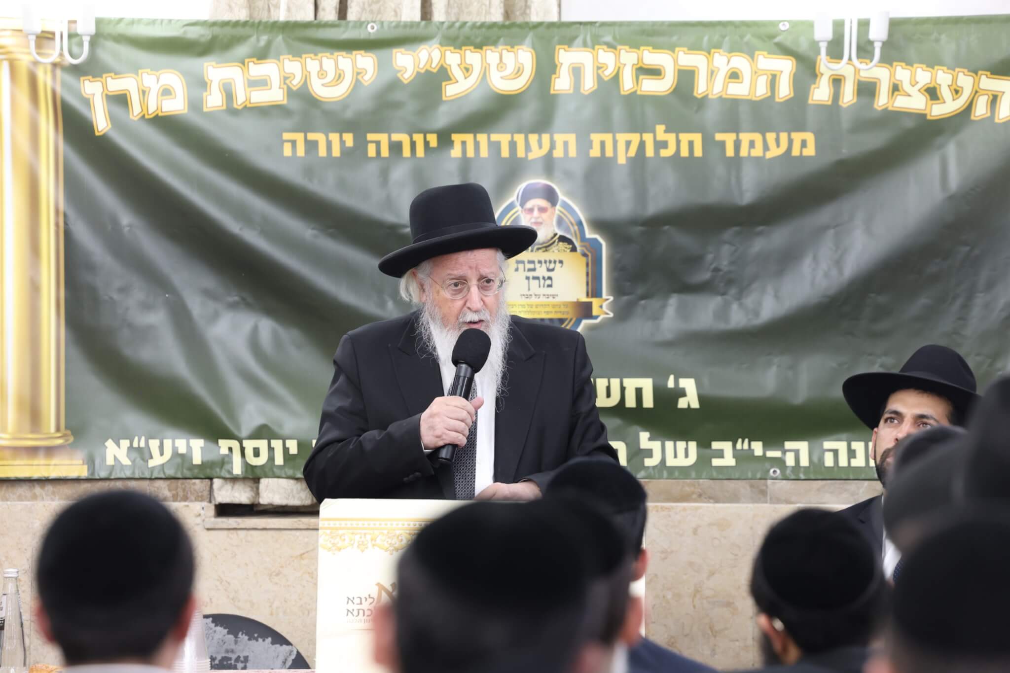 אמש נערכה עצרת זיכרון בהיכל ישיבת מרן הגר"ע יוסף הסמוכה לציונו, במלאות י"ב שנה להסתלקותו, בשילוב חלוקת תעודות יורה יורה לאברכי בית המדרש.