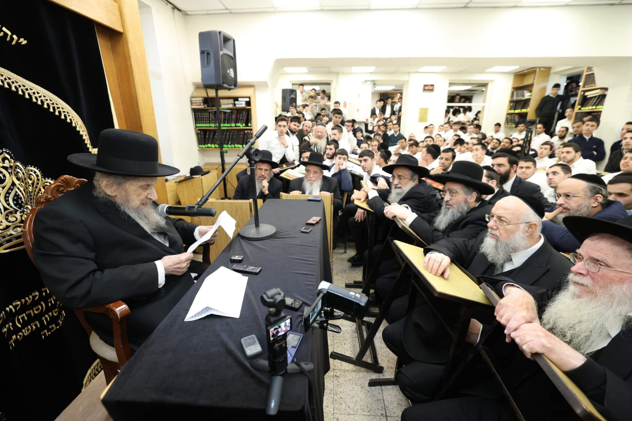הקהל הרב שגדש את ההיכל קיבל את פניו בהתרגשות, כאשר דבריו נשאו נופך עמוק של אחריות ותחושת שליחות בעבודת ה' בדור הסוער.